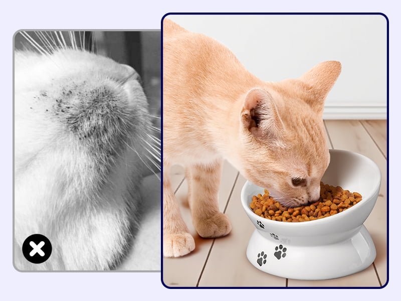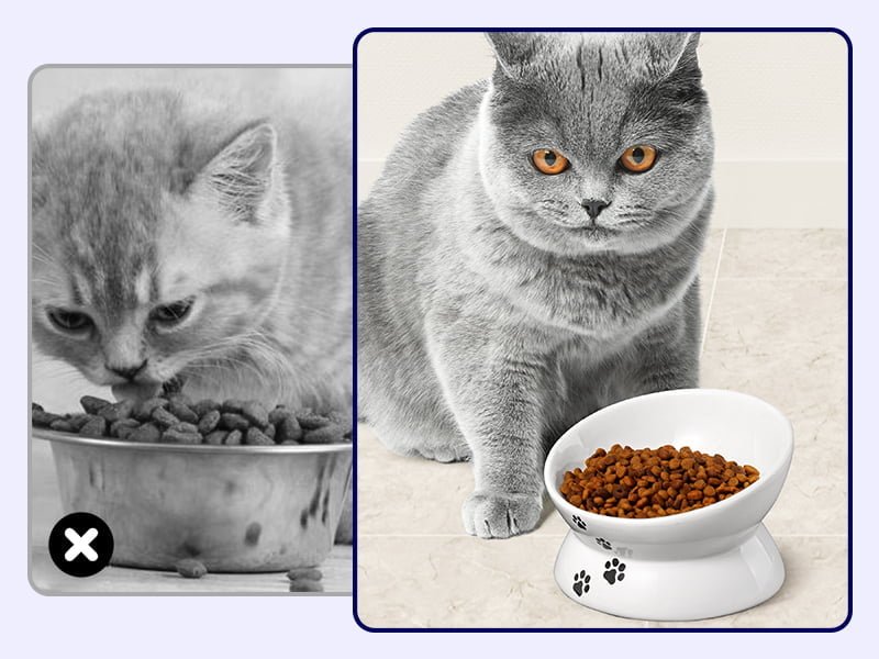 It means your cat bowl is too low. The raised cat bowl needs to be selected according to the height and body shape of the cat, so that the cat does not need to bend over excessively when eating and avoid cervical spine fatigue.